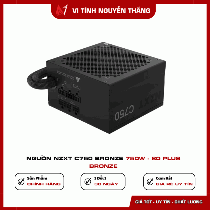 Nguồn NZXT C750 Bronze 750W 80 Plus Bronze là bộ nguồn chất lượng cao đến từ thương hiệu NZXT, được thiết kế dành cho các hệ thống PC gaming, workstation và máy tính hiệu năng cao. Với công suất thực 750W cùng chứng nhận 80 Plus Bronze, sản phẩm mang lại hiệu suất ổn định, tiết kiệm điện và độ bền lâu dài.