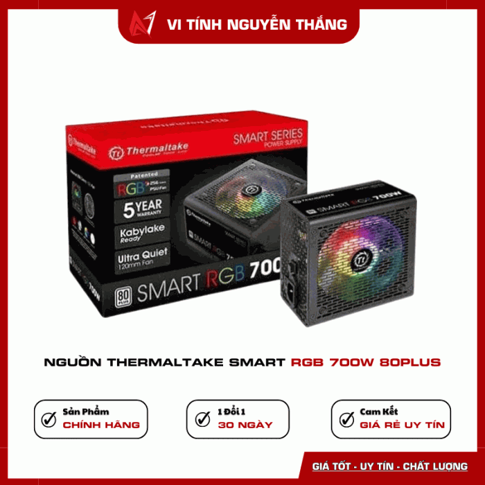 Nguồn Thermaltake Smart RGB 700W 80 Plus là lựa chọn lý tưởng cho người dùng cần bộ nguồn ổn định, đẹp mắt và giá thành hợp lý cho PC gaming hoặc làm việc.
