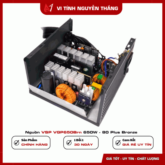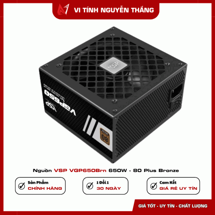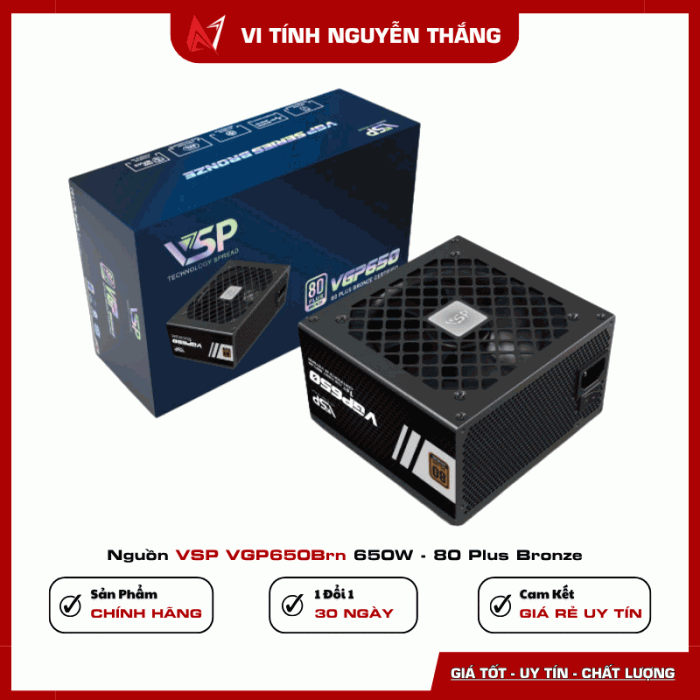 Nguồn VSP VGP650BRN 650W – 80 Plus Bronze là lựa chọn đáng giá trong tầm giá, đáp ứng nhu cầu cho mọi dàn PC tầm trung. Với hiệu suất cao, công nghệ bảo vệ đầy đủ và thiết kế bền bỉ, sản phẩm phù hợp cho người dùng đang tìm kiếm một bộ nguồn ổn định – tiết kiệm – giá tốt.