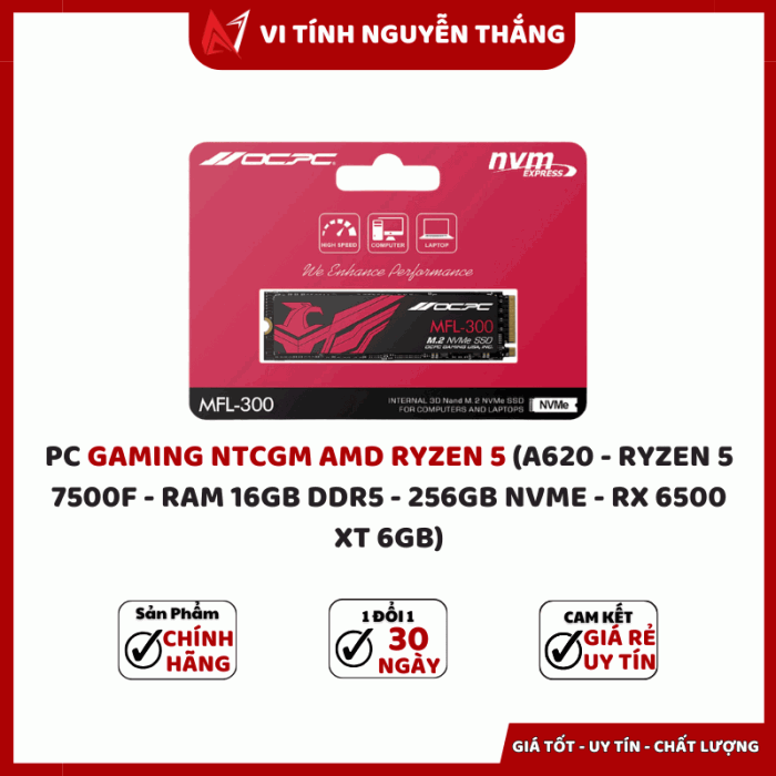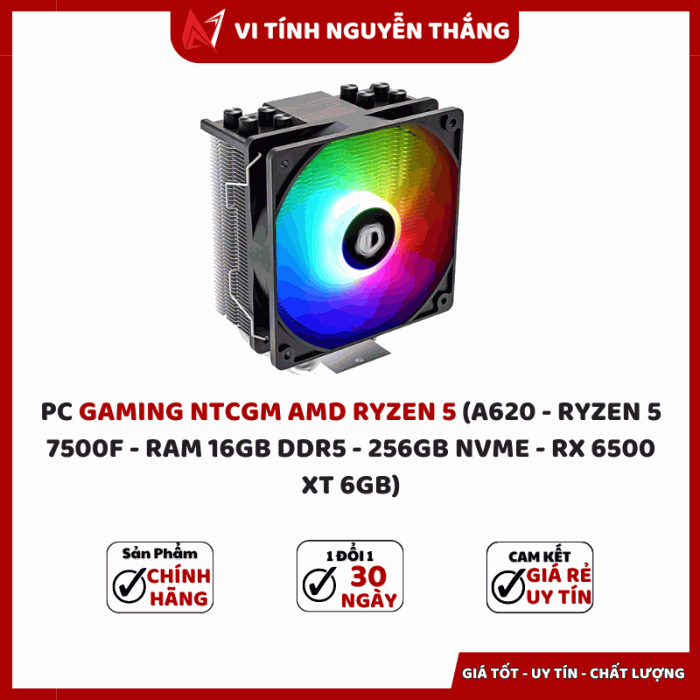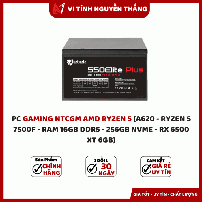 PC GAMING NTCGM AMD RYZEN 5 là lựa chọn hoàn hảo cho game thủ muốn sở hữu hiệu năng mạnh mẽ trong tầm giá hợp lý. Sở hữu CPU AMD Ryzen 5 7500F, RAM 16GB DDR5, ổ cứng NVMe 256GB và card đồ họa RX 6500 XT 6GB, bộ máy mang đến tốc độ xử lý mượt mà, hình ảnh sắc nét và khả năng chơi mượt các tựa game phổ biến hiện nay.