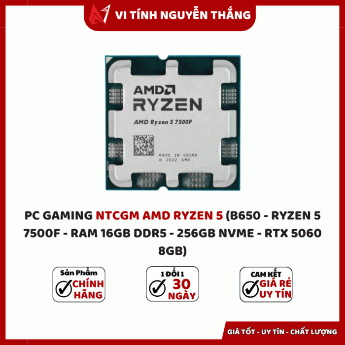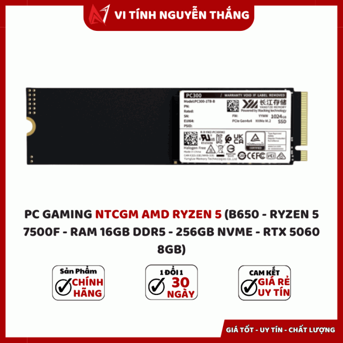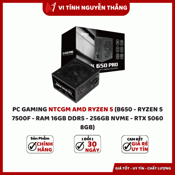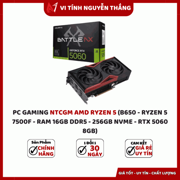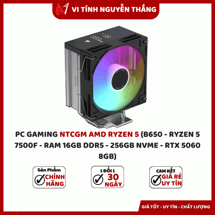 Với cấu hình mạnh mẽ, khả năng xử lý vượt trội và card đồ họa đời mới, PC GAMING NTCGM AMD RYZEN 5 (B650 - Ryzen 5 7500F - RAM 16GB DDR5 - 256GB NVMe - RTX 5060 8GB) chắc chắn là lựa chọn hoàn hảo cho game thủ, streamer và cả dân thiết kế đồ họa. Đây là chiếc máy mang đến trải nghiệm mượt mà – hiệu suất tối ưu – giá trị lâu dài.