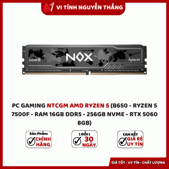Bạn đang tìm kiếm một chiếc PC Gaming vừa mạnh mẽ, vừa tối ưu chi phí để chiến mọi tựa game hot hiện nay? Bộ máy PC GAMING NTCGM AMD RYZEN 5 chính là lựa chọn đáng cân nhắc. Được trang bị CPU Ryzen 5 7500F cùng card đồ họa RTX 5060 8GB, chiếc máy này mang lại hiệu năng vượt trội, phù hợp cho cả game thủ và người dùng làm đồ họa, dựng video.