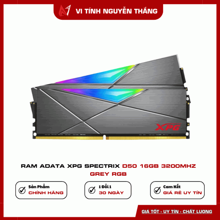 RAM ADATA XPG Spectrix D50 16GB 3200MHz DDR4 RGB là lựa chọn hoàn hảo cho những ai cần hiệu năng ổn định, thiết kế RGB nổi bật và độ bền cao, phù hợp với mọi cấu hình PC hiện đại.