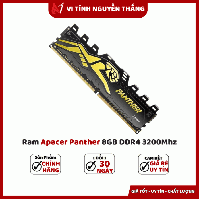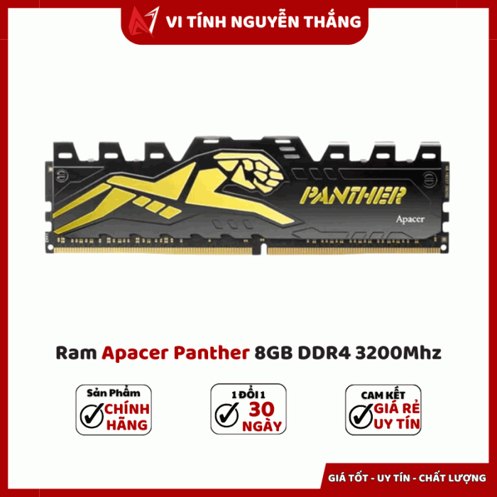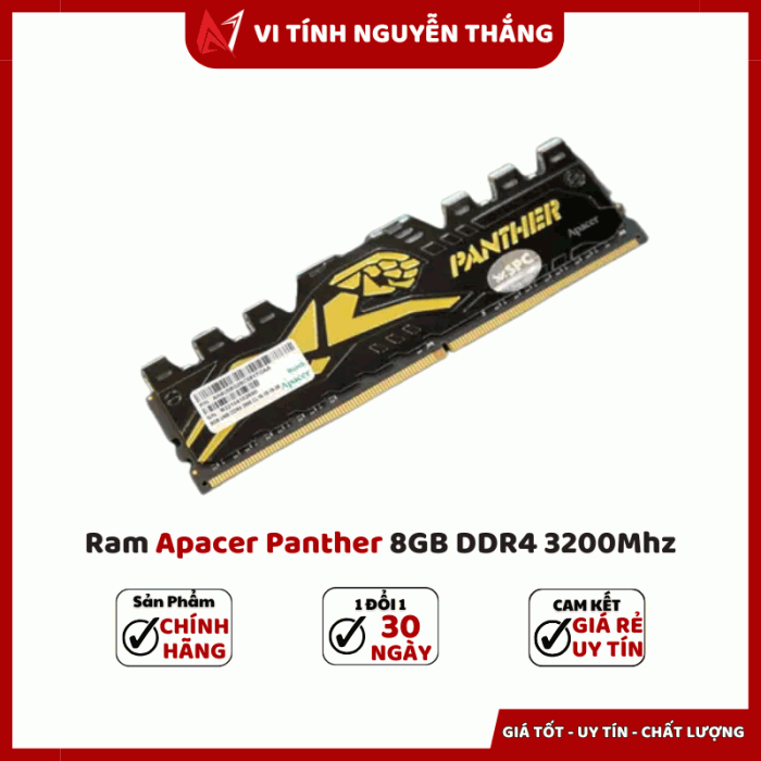 RAM Apacer Panther 8GB DDR4 3200 là lựa chọn hợp lý cho người dùng muốn nâng cấp hiệu năng với ngân sách vừa phải. Với bus 3200 MHz, độ trễ CL16, điện áp 1.2V và tản nhiệt thép, sản phẩm mang lại hiệu suất ổn định khi chơi game, làm đồ họa hay đa nhiệm. Nếu bạn cần một thanh RAM vừa đáp ứng hiệu năng, vừa có thiết kế bắt mắt và khả năng tản nhiệt tốt — Apacer Panther là phương án cân bằng giữa hiệu năng độ bền chi phí.