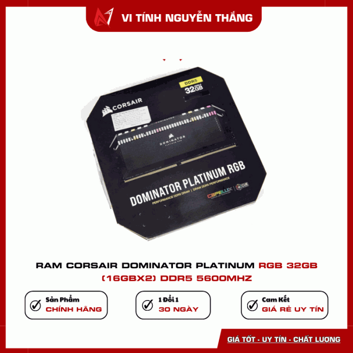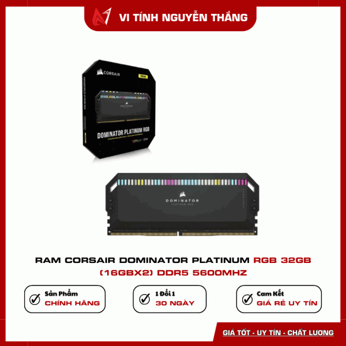 RAM Corsair Dominator Platinum RGB 32GB DDR5 5600MHz là lựa chọn lý tưởng cho những ai cần hiệu năng cao, độ ổn định bền bỉ và thiết kế RGB cao cấp cho các bộ PC thế hệ mới.