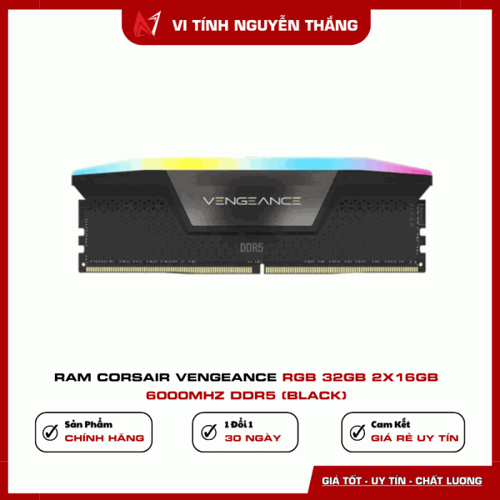 RAM Corsair Vengeance RGB 32GB 6000MHz DDR5 là lựa chọn lý tưởng cho những ai yêu cầu hiệu suất cao, thiết kế RGB đẹp mắt và độ ổn định vượt trội cho hệ thống PC thế hệ mới.