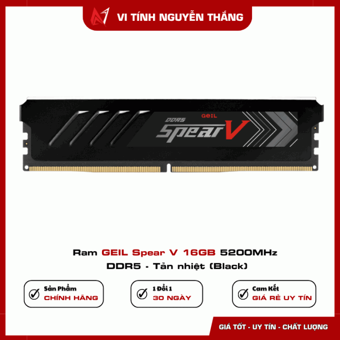 Ram GEIL Spear V 16GB 5200MHz DDR5 - Tản nhiệt (Black)