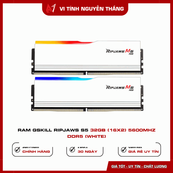 RAM G.Skill Ripjaws S5 32GB 5600MHz DDR5 White mang đến sự cân bằng hoàn hảo giữa hiệu năng, thiết kế và độ bền – lựa chọn tối ưu cho các bộ PC thế hệ mới.