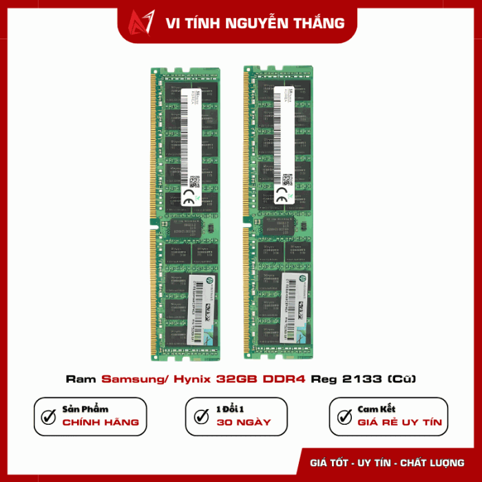 Ram Samsung / Hynix 32GB DDR4 ECC Registered 2133MHz là lựa chọn phù hợp cho người dùng cần độ ổn định cao, khả năng sửa lỗi bộ nhớ và chi phí hợp lý. Với dung lượng lớn và chuẩn ECC RDIMM, sản phẩm đáp ứng tốt nhu cầu vận hành server, workstation và các hệ thống chuyên nghiệp.
