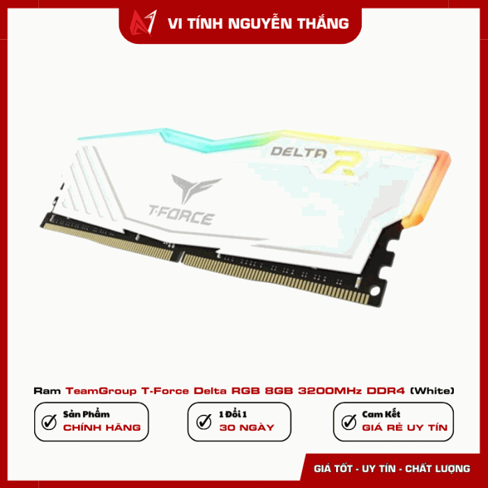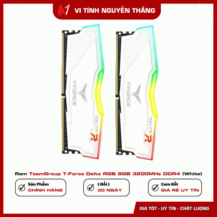 Ram TeamGroup T-Force Delta RGB 8GB 3200MHz DDR4 (White) là lựa chọn phù hợp cho người dùng cần nâng cấp PC với chi phí hợp lý nhưng vẫn đảm bảo hiệu năng và tính thẩm mỹ. Tốc độ 3200MHz, thiết kế RGB nổi bật cùng tản nhiệt chắc chắn giúp sản phẩm đáp ứng tốt nhu cầu gaming và làm việc hàng ngày.