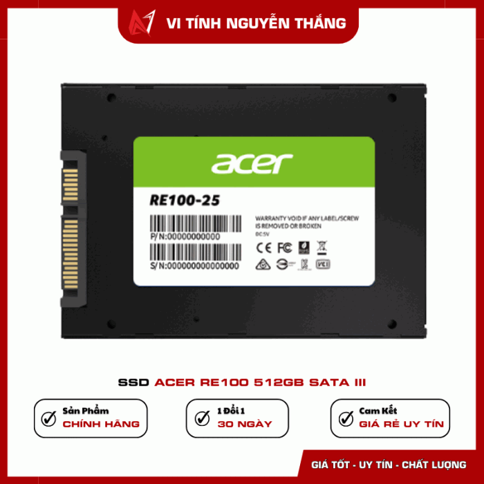 SSD ACER RE100 512GB SATA III là giải pháp nâng cấp hiệu năng tối ưu dành cho máy tính bàn và laptop sử dụng chuẩn 2.5 inch. Với tốc độ đọc lên đến 560MB/s và ghi 520MB/s, sản phẩm giúp cải thiện đáng kể thời gian khởi động hệ điều hành, mở ứng dụng và sao chép dữ liệu.