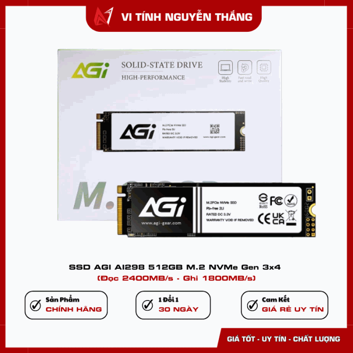SSD AGI AI298 512GB M.2 NVMe Gen 3x4 là lựa chọn nâng cấp hoàn hảo trong tầm giá, mang lại hiệu suất mạnh mẽ, bền bỉ và tương thích cao. Đây là giải pháp tối ưu để cải thiện tốc độ máy tính mà không cần đầu tư quá nhiều chi phí.