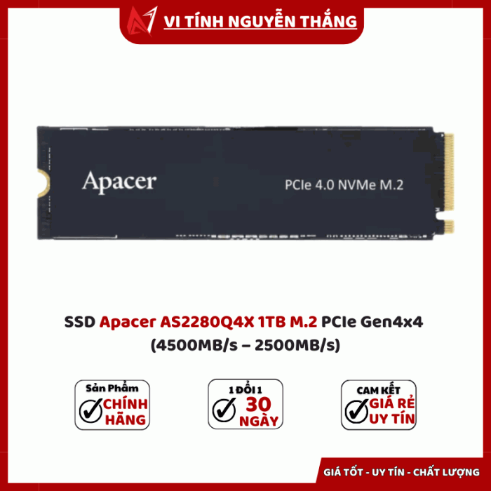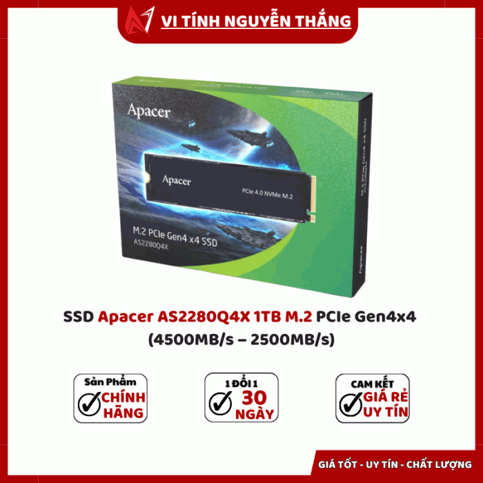 SSD Apacer AS2280Q4X 1TB M.2 PCIe Gen4x4 là sự lựa chọn lý tưởng cho người dùng muốn sở hữu ổ cứng tốc độ cao, dung lượng lớn và độ bền vượt trội. Với tốc độ đọc ghi ấn tượng cùng chuẩn Gen4 hiện đại, sản phẩm mang lại trải nghiệm mượt mà, từ gaming, đồ họa cho đến công việc văn phòng.