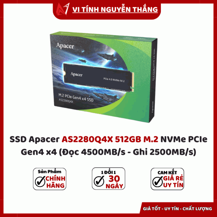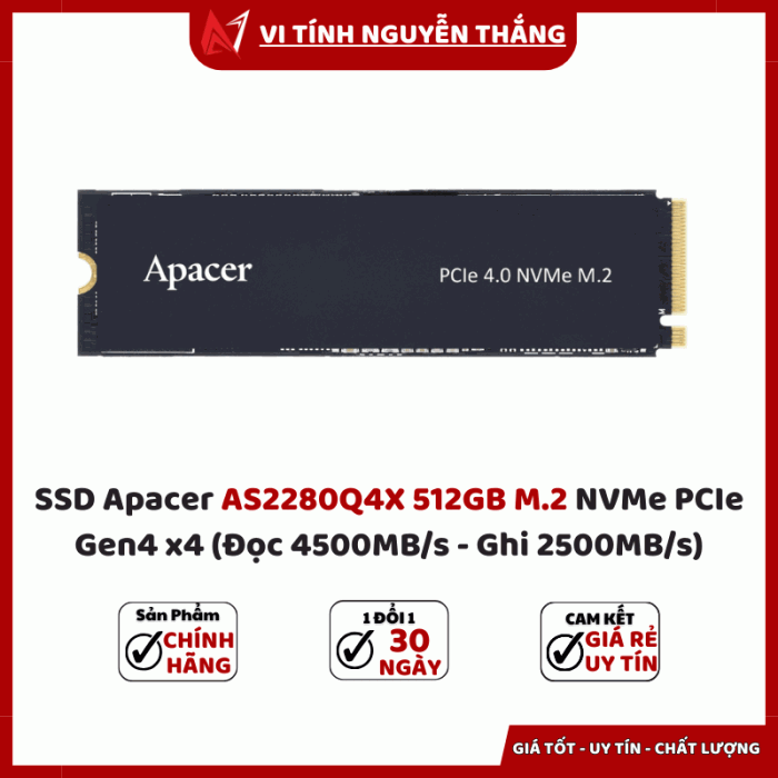 SSD Apacer AS2280Q4X 512GB M.2 NVMe PCIe Gen4 x4 (Đọc 4500MB/s - Ghi 2500MB/s)