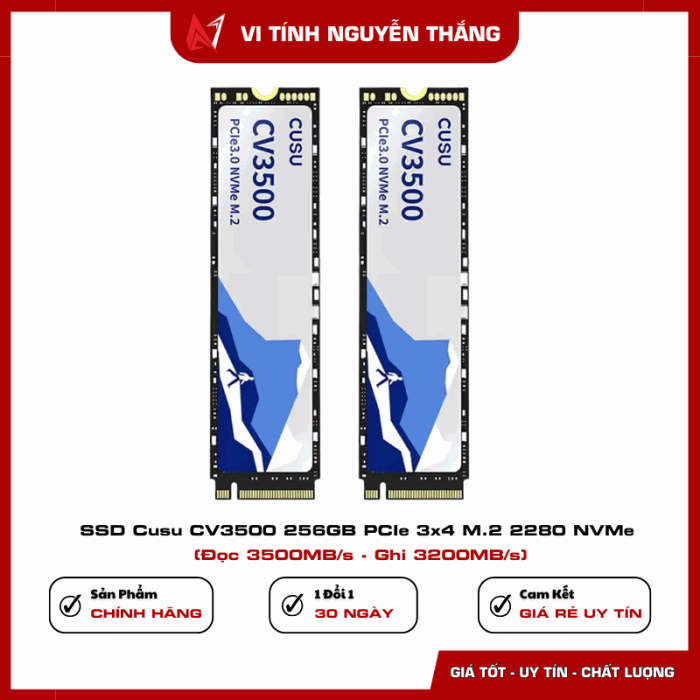 SSD Cusu CV3500 256GB PCIe 3.0 x4 M.2 2280 NVMe là lựa chọn phù hợp cho người dùng cần hiệu suất cao trong phân khúc phổ thông. Tốc độ đọc ghi ấn tượng, chuẩn giao tiếp hiện đại và độ bền ổn định giúp tối ưu trải nghiệm sử dụng, đồng thời nâng cấp đáng kể hiệu năng tổng thể của hệ thống.