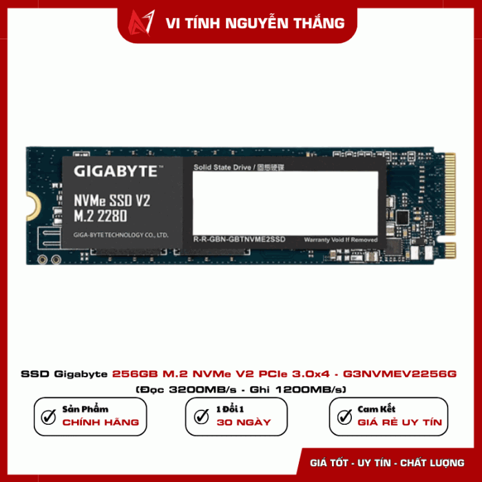 SSD Gigabyte 256GB M.2 NVMe V2 PCIe 3.0x4 - G3NVMEV2256G (Đọc 3200MB/s - Ghi 1200MB/s)