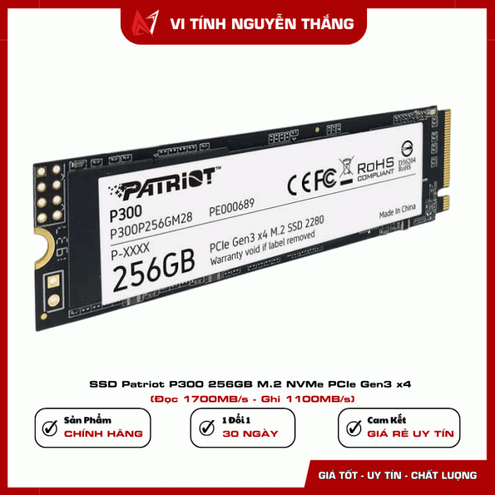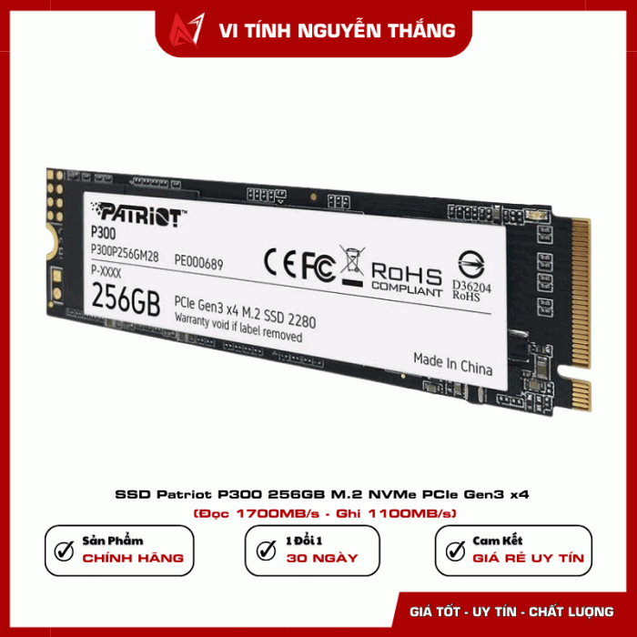 SSD Patriot P300 256GB M.2 NVMe PCIe Gen3 x4 là giải pháp nâng cấp lý tưởng cho người dùng phổ thông cần tốc độ nhanh hơn HDD và SSD SATA, dung lượng vừa đủ, độ ổn định cao và chi phí hợp lý. Phù hợp cho cả PC để bàn lẫn laptop trong môi trường làm việc và học tập.