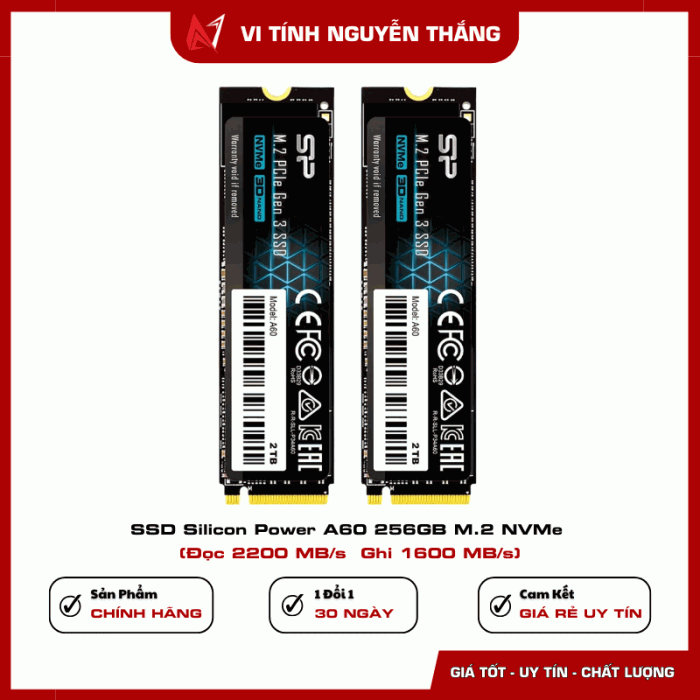 SSD Silicon Power A60 256GB là giải pháp lưu trữ tốc độ cao dành cho người dùng muốn nâng cấp hiệu năng cho máy tính cá nhân hoặc laptop. Sử dụng chuẩn giao tiếp NVMe PCIe Gen3 x4 hiện đại, ổ cứng mang lại tốc độ đọc và ghi vượt trội so với các dòng SSD SATA truyền thống. Điều này giúp hệ thống khởi động nhanh hơn, ứng dụng mở tức thì và quá trình sao chép dữ liệu diễn ra mượt mà hơn.