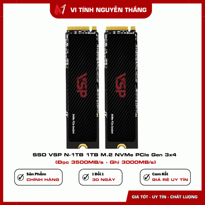 SSD VSP N-1TB 1TB M.2 NVMe PCIe Gen 3x4 là lựa chọn đáng tin cậy cho người dùng cần dung lượng lớn, tốc độ cao và độ ổn định lâu dài. Sản phẩm phù hợp cho nhu cầu làm việc văn phòng, học tập, giải trí và lưu trữ dữ liệu dung lượng lớn.