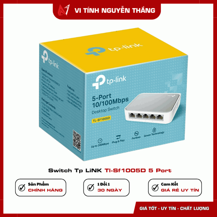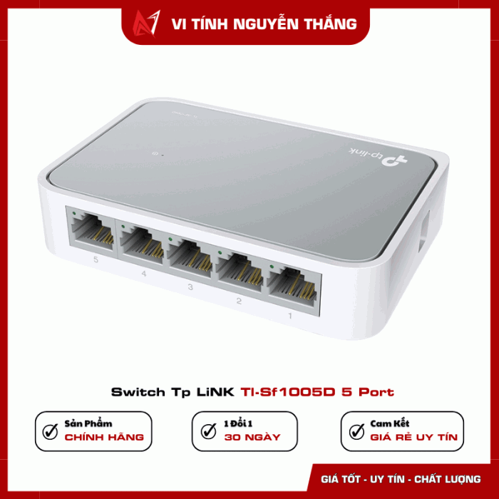 Switch TP-Link TL-SF1005D 5 port là lựa chọn lý tưởng cho người dùng cần một thiết bị chia mạng ổn định, tiết kiệm điện và dễ sử dụng. Sản phẩm phù hợp cho hộ gia đình, cửa hàng nhỏ, lớp học và văn phòng quy mô nhỏ. Thiết kế nhỏ gọn, hoạt động bền bỉ và giá thành hợp lý giúp TL-SF1005D trở thành dòng switch bán chạy nhất trong phân khúc 5 port.