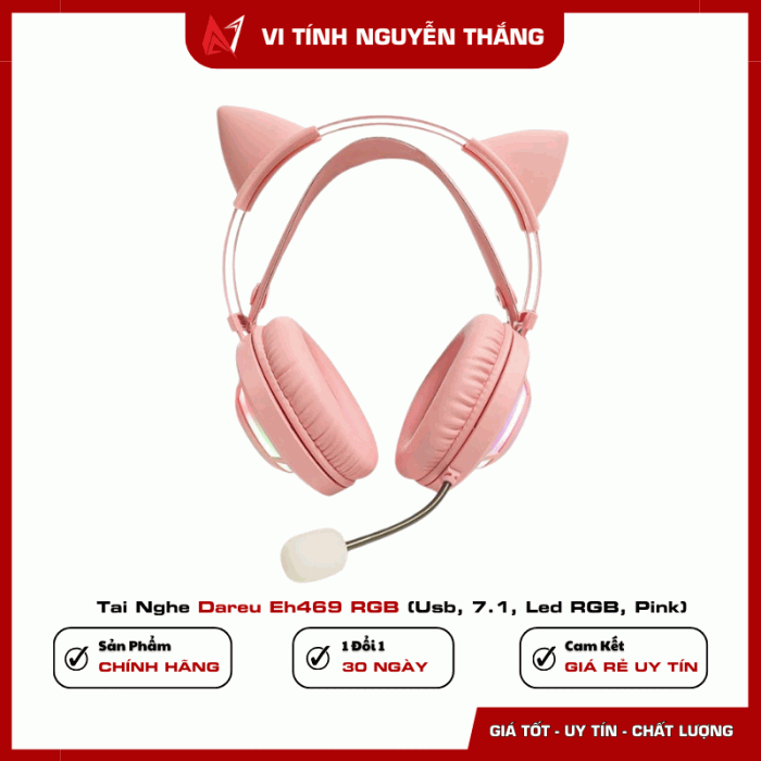 Tai Nghe Dareu Eh469 RGB (Usb, 7.1, Led RGB, Pink)