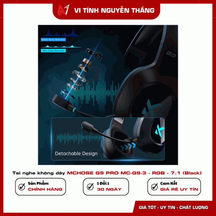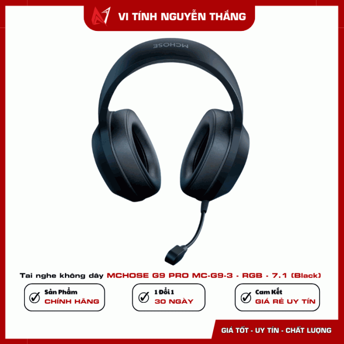 Tai nghe không dây MCHOSE G9 PRO MC-G9-3 - RGB - 7.1 (Black) (Giữ lại Box để bảo hành)