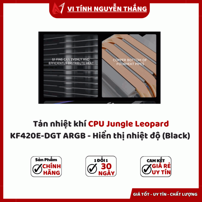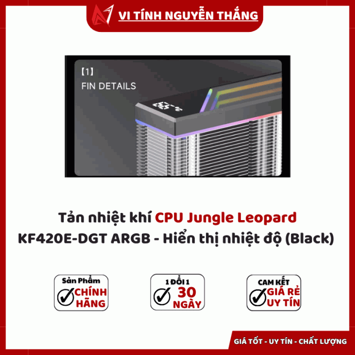 Tản nhiệt khí CPU Jungle Leopard KF420E-DGT ARGB (Black) không chỉ mang lại hiệu suất tản nhiệt vượt trội mà còn nổi bật với khả năng hiển thị nhiệt độ trực quan, giúp bạn kiểm soát hệ thống dễ dàng. Kết hợp với thiết kế ARGB hiện đại và phong cách gaming mạnh mẽ, đây chắc chắn là lựa chọn lý tưởng cho game thủ và người dùng PC muốn vừa hiệu quả vừa thẩm mỹ.