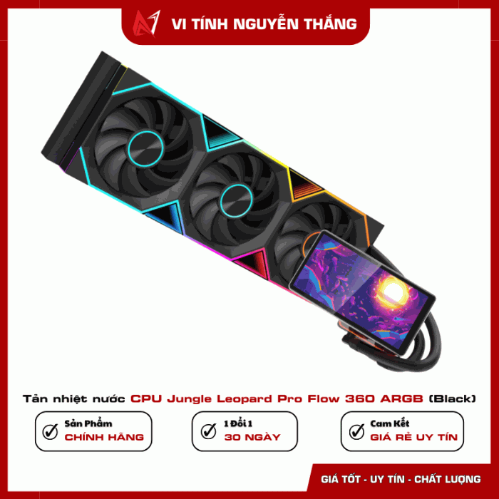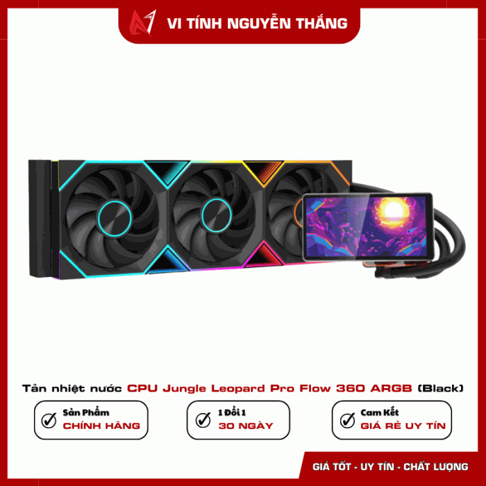 Jungle Leopard Pro Flow 360 ARGB là bộ tản nhiệt nước AIO cao cấp được thiết kế dành cho các hệ thống PC hiệu năng cao. Sản phẩm sở hữu radiator 360mm kết hợp cùng ba quạt ARGB 120mm, mang lại khả năng làm mát mạnh mẽ cho các bộ vi xử lý thế hệ mới.