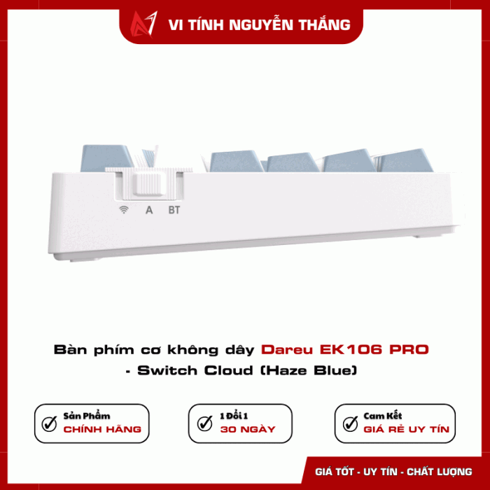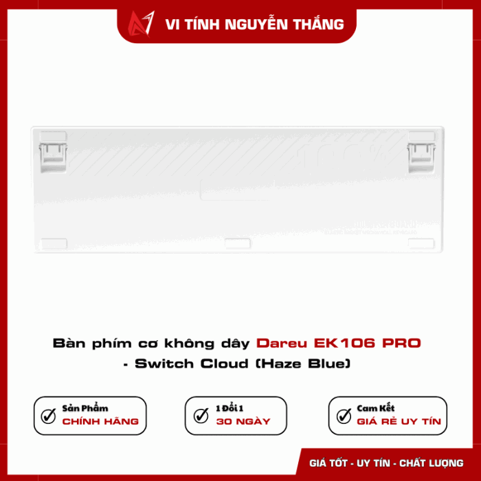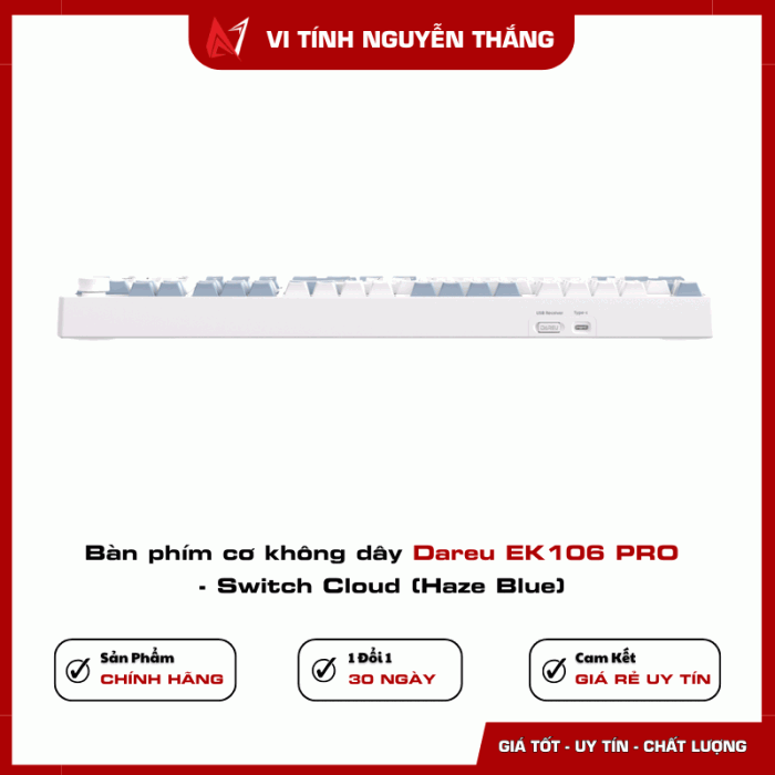 Bàn phím cơ không dây DareU EK106 PRO - Switch Cloud (Haze Blue) là mẫu bàn phím thế hệ mới được hãng DareU phát triển hướng tới người dùng yêu thích sự êm ái, hiện đại và linh hoạt. Với thiết kế Full Size, kết nối đa chế độ cùng cấu trúc Gasket cao cấp, EK106 PRO không chỉ mang lại cảm giác gõ ấn tượng mà còn là điểm nhấn hoàn hảo cho góc làm việc hoặc không gian gaming chuyên nghiệp.