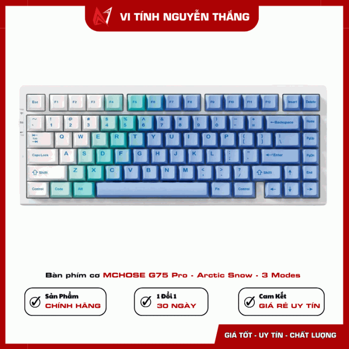 MCHOSE G75 Pro Arctic Snow là lựa chọn đáng giá trong phân khúc bàn phím cơ 75% cao cấp, nổi bật với kết cấu gasket mount êm ái, khả năng kết nối 3 chế độ linh hoạt và mức độ hoàn thiện cao. Sản phẩm phù hợp cho người dùng làm việc nhiều, game thủ hoặc những ai muốn một chiếc bàn phím cơ dễ tùy biến, sử dụng ổn định lâu dài.