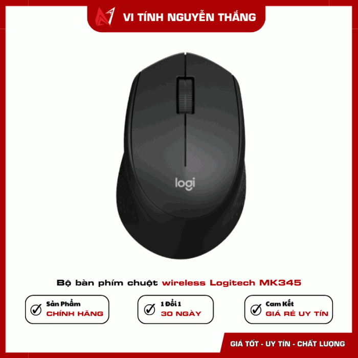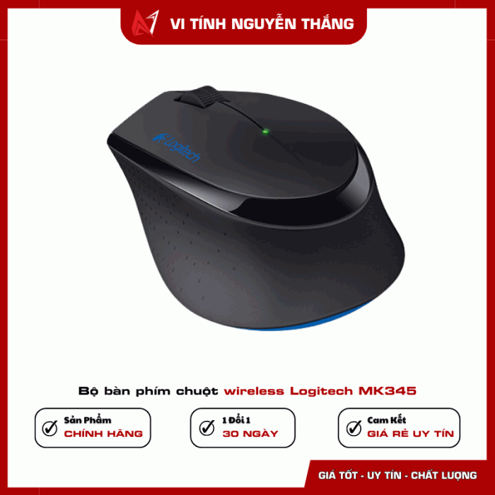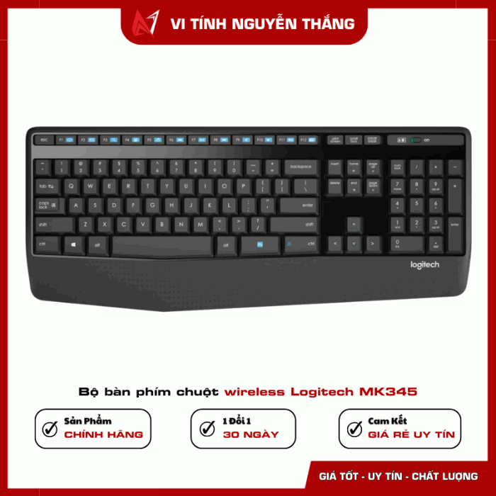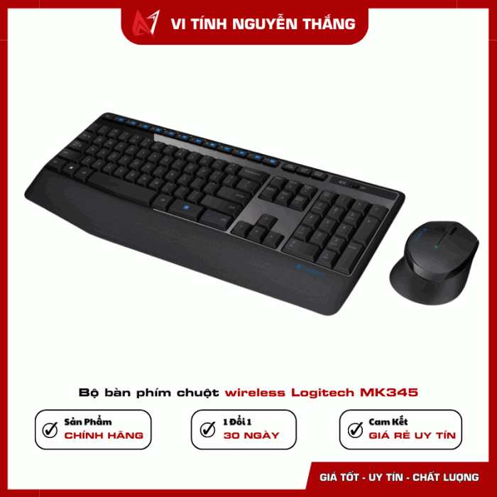 Bộ bàn phím chuột wireless Logitech MK345 là lựa chọn phù hợp cho người dùng cần một combo không dây ổn định, pin lâu và thiết kế thoải mái để làm việc trong thời gian dài. Bàn phím full size có gác tay, chuột quang học bền bỉ cùng thời lượng pin lên đến 36 tháng là những ưu điểm nổi bật trong phân khúc.