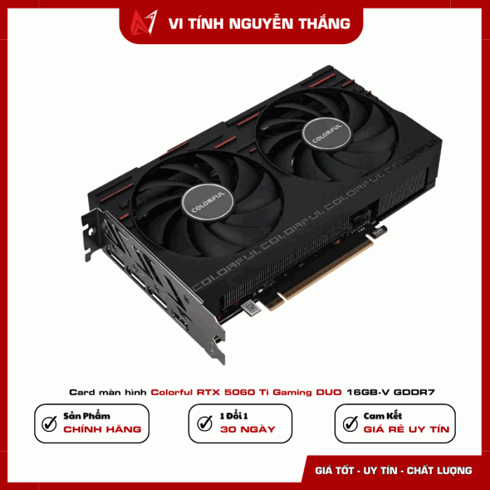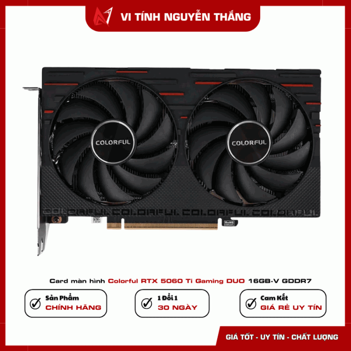 Colorful RTX 5060 Ti Gaming DUO 16GB-V là lựa chọn cân bằng giữa hiệu năng – công nghệ – chi phí. Phù hợp gaming 2K/4K, stream, thiết kế và dựng video. Nếu bạn đang tìm một VGA mạnh, bền, dễ lắp, hỗ trợ lâu dài thì đây là phương án rất đáng đầu tư.