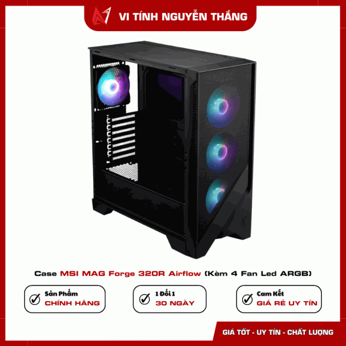Case MSI MAG Forge 320R Airflow (kèm 4 fan LED ARGB) là lựa chọn cân bằng giữa thiết kế, khả năng tản nhiệt và chi phí. Với airflow tối ưu, hỗ trợ linh kiện kích thước lớn và hệ thống quạt sẵn có, sản phẩm đáp ứng tốt nhu cầu build PC gaming và làm việc lâu dài.