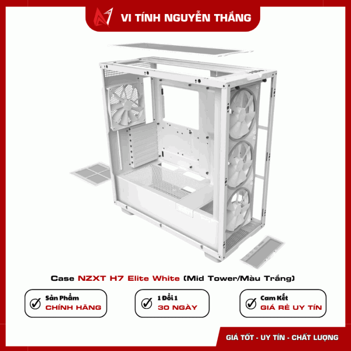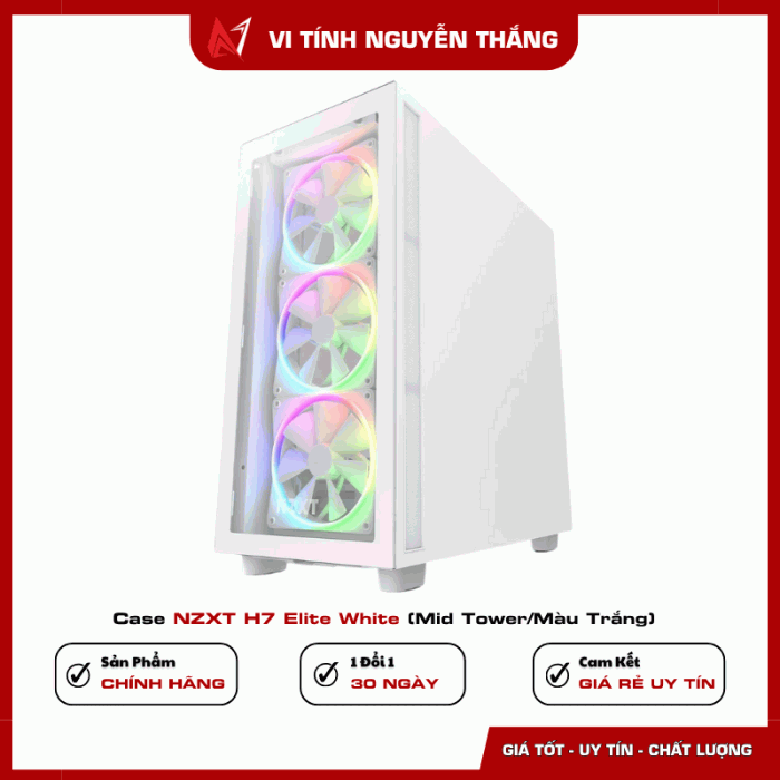 NZXT H7 Elite White là lựa chọn hoàn hảo cho những ai muốn sở hữu một case mid tower cao cấp, đẹp sang, tản nhiệt mạnh và dễ build. Với mặt kính cường lực full-size, không gian rộng rãi, hỗ trợ radiator 360mm và fan RGB tích hợp, case giúp setup PC trở nên chuyên nghiệp, bền bỉ và nổi bật ngay cả trong phòng gaming hoặc studio. Đây là case lý tưởng cho game thủ, streamer, dân dựng hình đồ họa hoặc bất kỳ ai muốn PC vừa đẹp vừa hiệu năng cao.