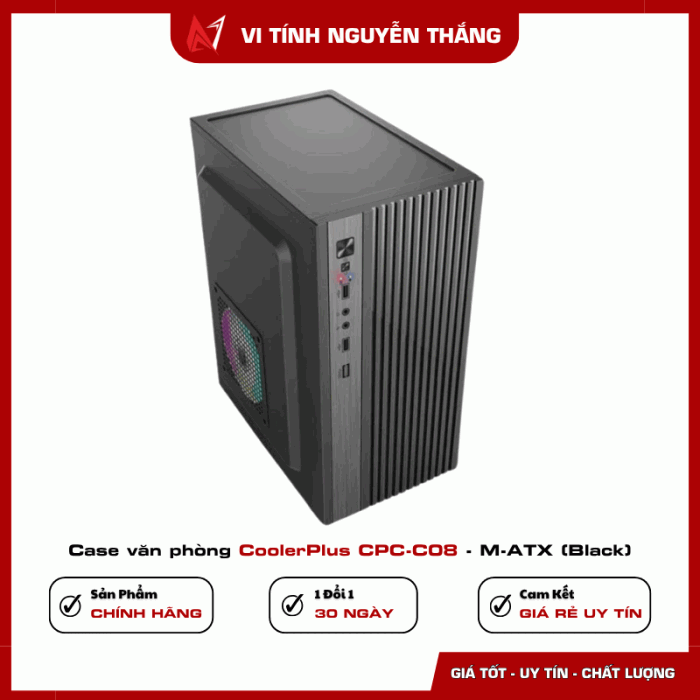 CoolerPlus CPC-C08 M-ATX (Black) là lựa chọn tuyệt vời cho những ai đang tìm kiếm một vỏ case máy tính văn phòng bền, gọn, dễ lắp và tiết kiệm chi phí. Với thiết kế đơn giản, khả năng hỗ trợ phần cứng tốt và mức giá hợp lý, sản phẩm này xứng đáng nằm trong danh sách ưu tiên khi lắp đặt dàn máy cho văn phòng hoặc sử dụng cá nhân.
