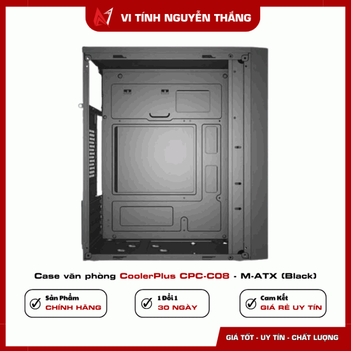 Trong thị trường linh kiện máy tính hiện nay, CoolerPlus CPC-C08 M-ATX (Black) nổi bật là một mẫu case văn phòng giá rẻ, chất lượng tốt, phù hợp cho nhu cầu làm việc, học tập và giải trí cơ bản. Sản phẩm được thiết kế với kiểu dáng nhỏ gọn, chắc chắn, dễ lắp đặt và tối ưu không gian làm việc.