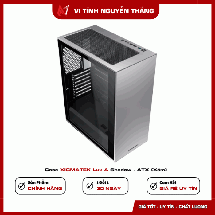 Case XIGMATEK Lux A Shadow - ATX (Xám) là dòng vỏ máy tính tầm trung cao cấp, được thiết kế tinh tế với mặt kính cường lực sang trọng, khung thép chắc chắn và khả năng hỗ trợ đa dạng phần cứng. Sản phẩm phù hợp cho người dùng muốn xây dựng một bộ PC gaming hoặc workstation mạnh mẽ, vừa đảm bảo tính thẩm mỹ vừa tối ưu khả năng tản nhiệt.