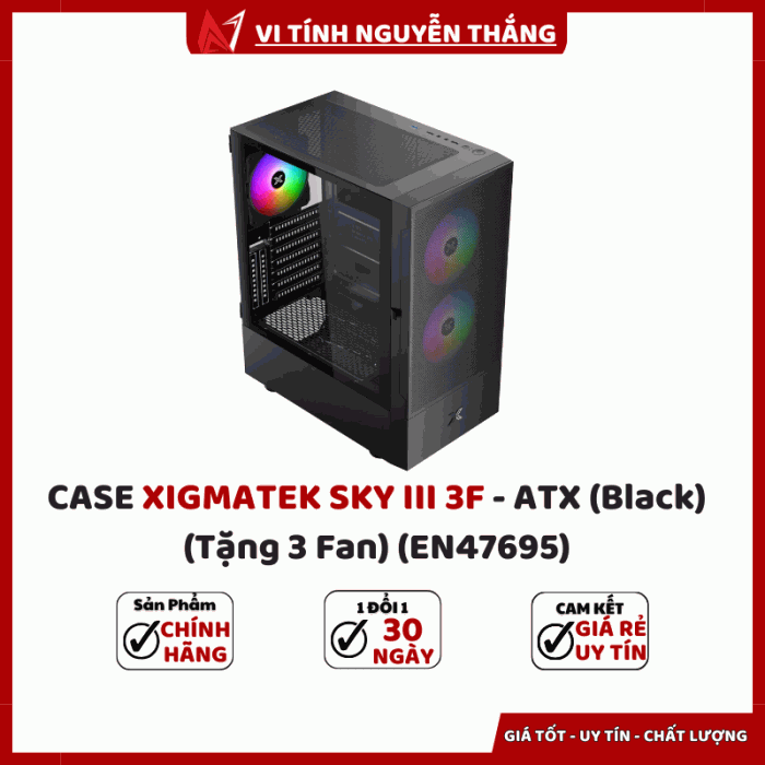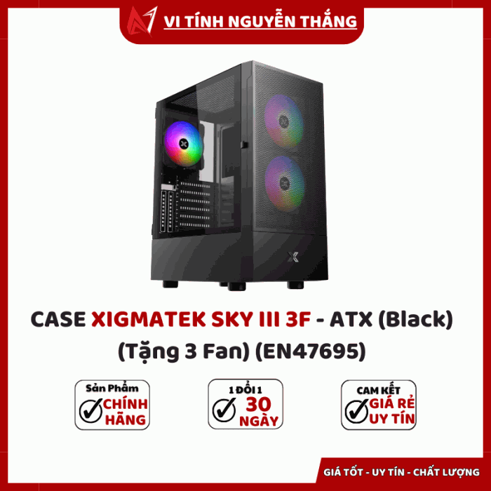 CASE XIGMATEK SKY III 3F - ATX (Black) (EN47695) là sự lựa chọn hoàn hảo cho người dùng đang tìm kiếm một vỏ case gaming đẹp – bền – rộng rãi – giá tốt. Với thiết kế hiện đại, mặt kính cường lực, khả năng tản nhiệt mạnh mẽ cùng 3 fan RGB được tặng kèm, sản phẩm xứng đáng trở thành “ngôi nhà” vững chắc và đầy phong cách cho dàn PC của bạn.