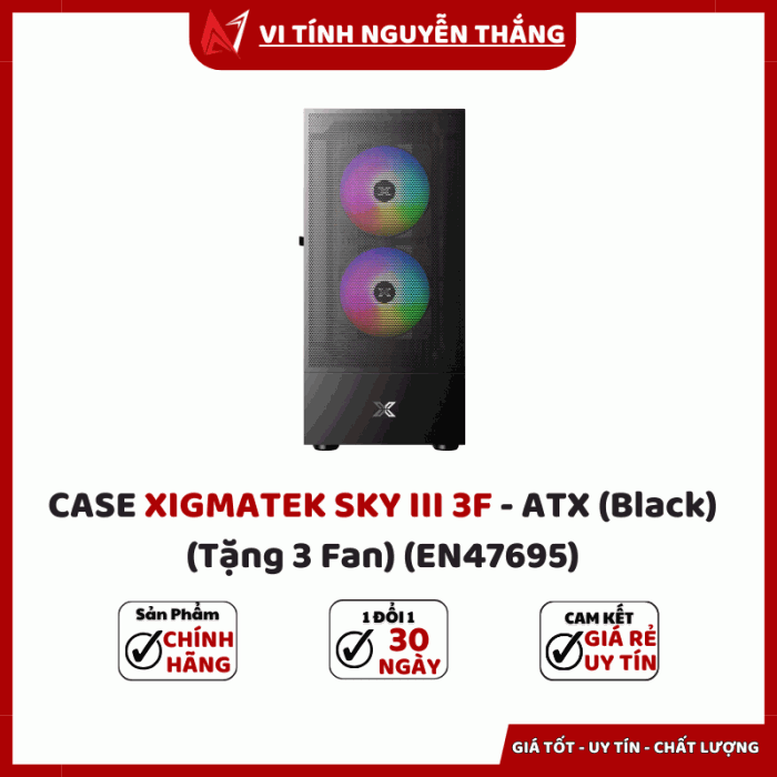 CASE XIGMATEK SKY III 3F - ATX (Black) (Tặng 3 Fan) (EN47695)