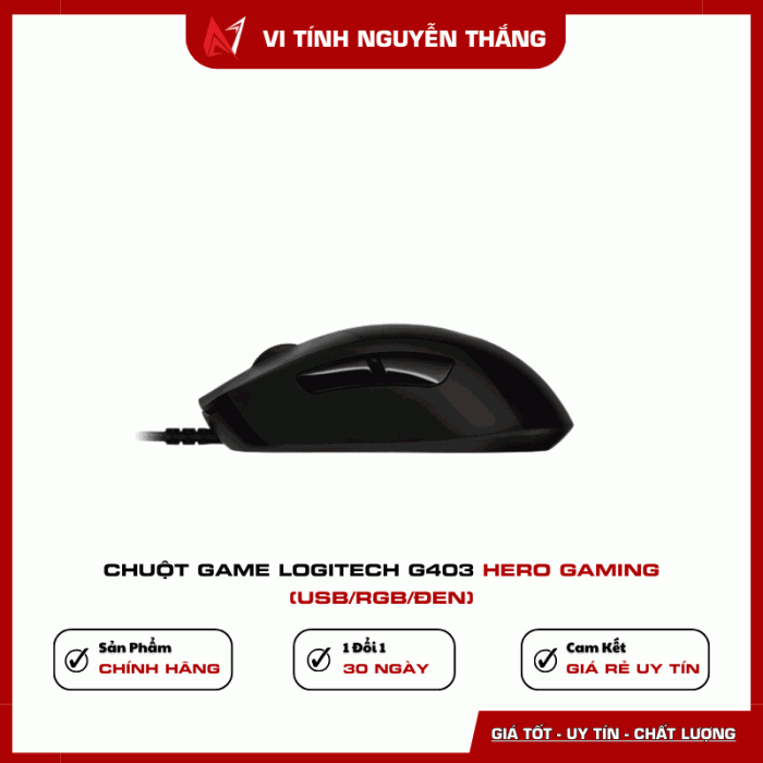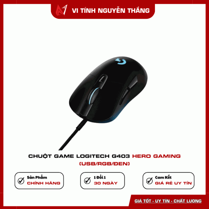 Chuột game Logitech G403 HERO là lựa chọn lý tưởng cho game thủ cần hiệu suất cao, độ chính xác tuyệt đối và thiết kế bền bỉ. Sản phẩm phù hợp cho cả chơi game chuyên nghiệp lẫn sử dụng hằng ngày.