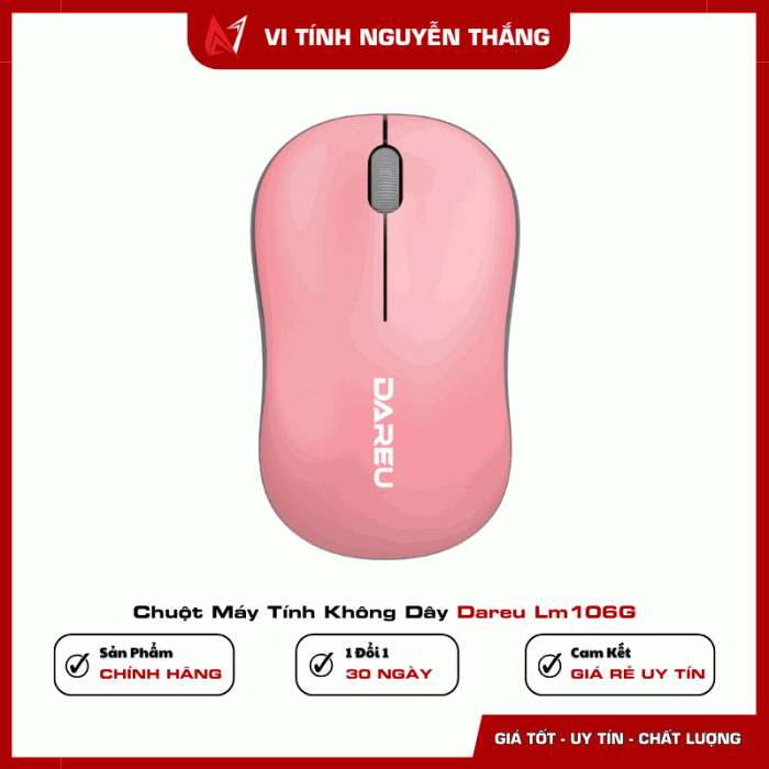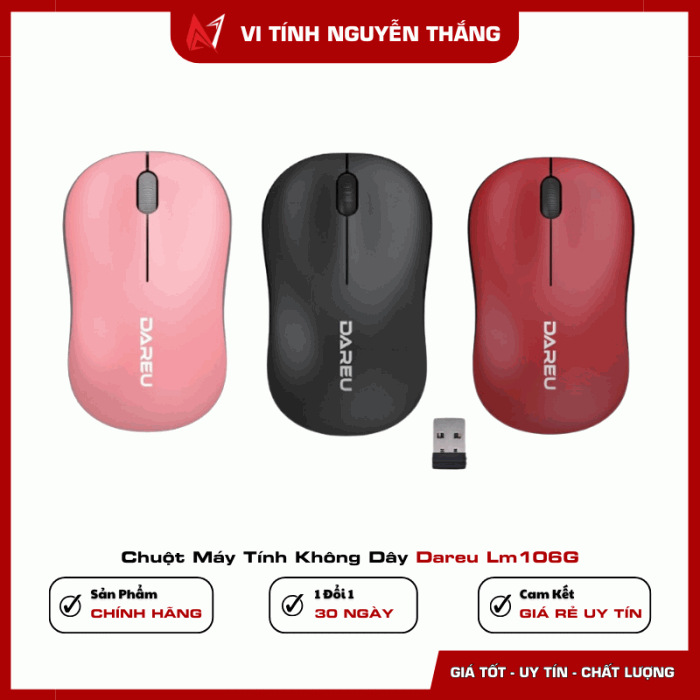 Chuột máy tính không dây Dareu LM106G là giải pháp thực tế cho nhu cầu sử dụng hằng ngày nhờ thiết kế nhẹ, kết nối ổn định và thao tác đơn giản. Sản phẩm đáp ứng tốt các tác vụ văn phòng, học tập với cảm biến 1200 DPI vừa đủ, dễ làm quen và không đòi hỏi cài đặt phức tạp. Nếu bạn đang tìm một mẫu chuột không dây gọn nhẹ, dễ dùng và bền bỉ cho công việc thường ngày, Dareu LM106G là lựa chọn hợp lý trong phân khúc phổ thông.