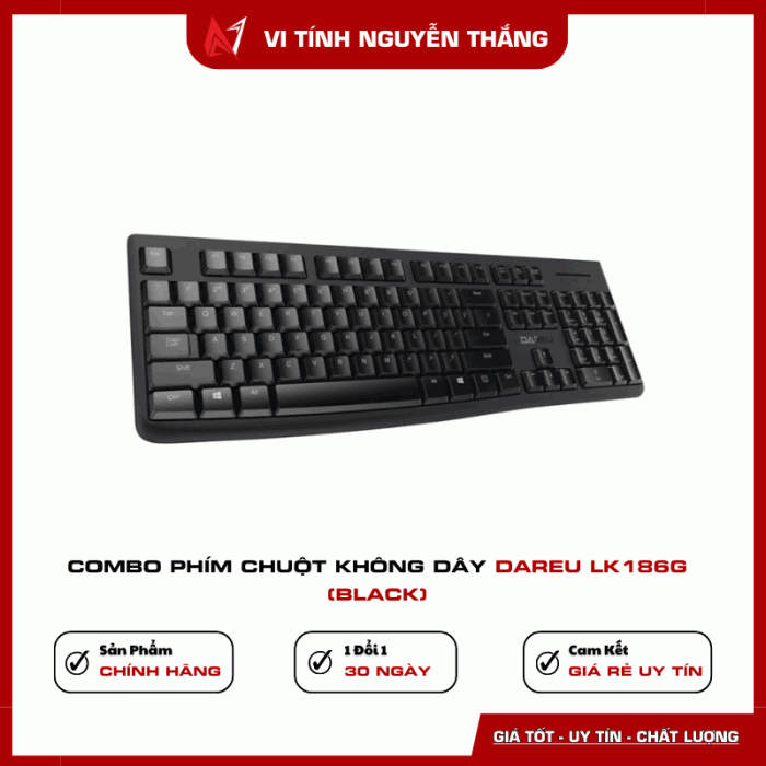 Combo phím chuột không dây DareU LK186G Black đáp ứng tốt các nhu cầu học tập, làm việc văn phòng và giải trí cơ bản với mức giá hợp lý.
