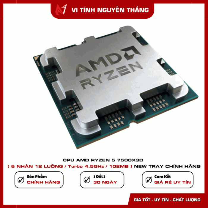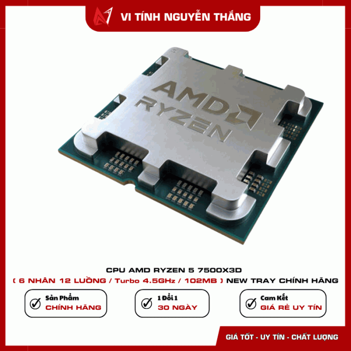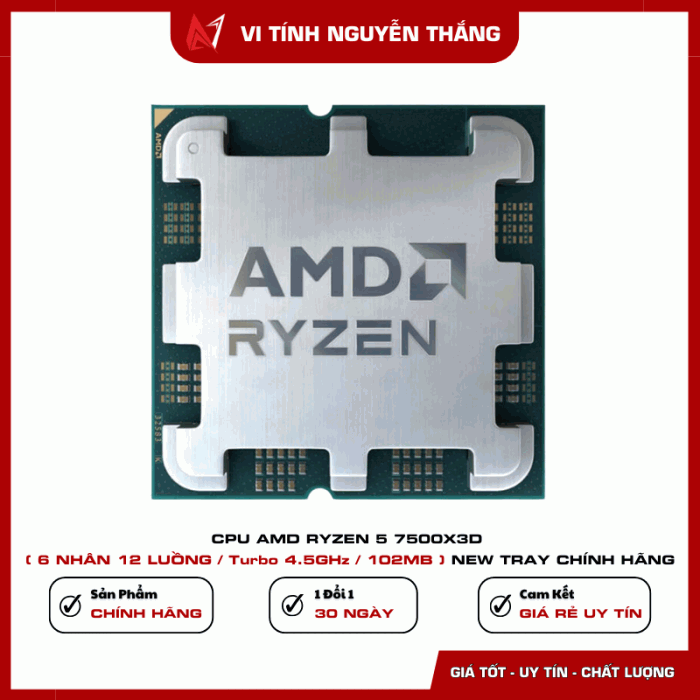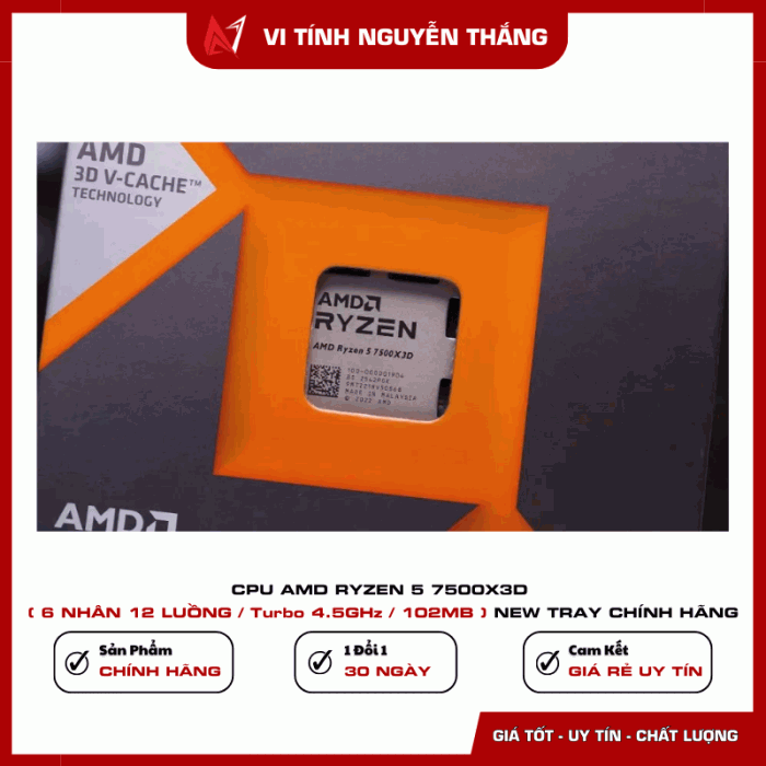 AMD Ryzen 5 7500X3D là bộ vi xử lý thế hệ mới sử dụng socket AM5, nổi bật với công nghệ 3D V-Cache giúp tăng mạnh dung lượng bộ nhớ đệm L3, tối ưu hiệu năng xử lý, đặc biệt trong các tác vụ gaming và ứng dụng yêu cầu độ trễ thấp.