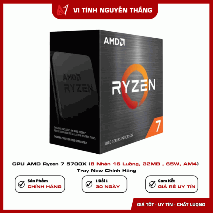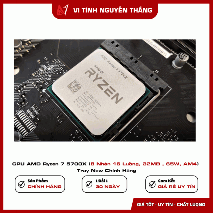 CPU AMD Ryzen 7 5700X là một trong những bộ vi xử lý đáng lựa chọn trong nền tảng AM4 nhờ hiệu năng mạnh mẽ, khả năng xử lý đa nhiệm tốt và mức tiêu thụ điện năng hợp lý. Với 8 nhân 16 luồng, xung boost lên đến 4.6GHz cùng bộ nhớ đệm 32MB, CPU mang lại hiệu suất ổn định cho cả gaming và công việc chuyên nghiệp.