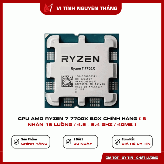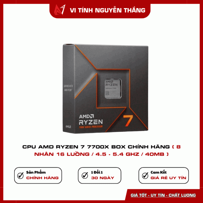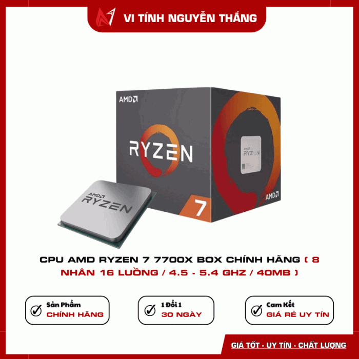 Với hiệu năng cao, độ ổn định tốt và khả năng ép xung, Ryzen 7 7700X là lựa chọn hoàn hảo cho game thủ, streamer và người dùng sáng tạo nội dung.
