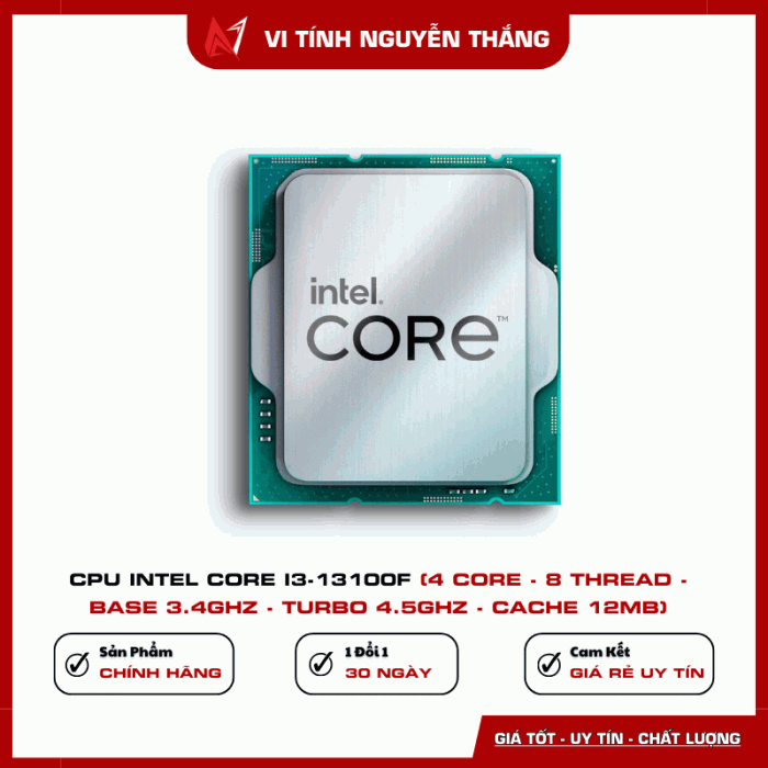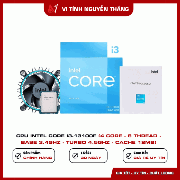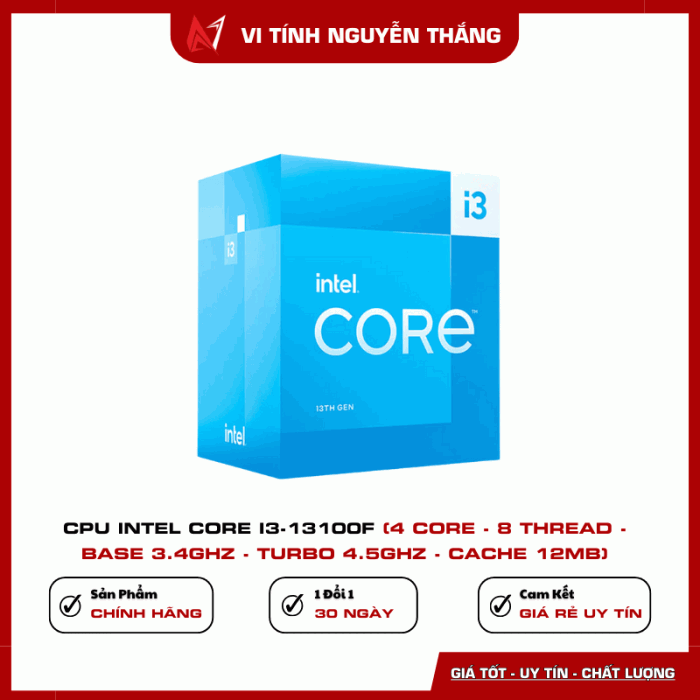 CPU Intel Core i3-13100F là sự lựa chọn hoàn hảo cho những ai cần một bộ vi xử lý mạnh mẽ, ổn định và tiết kiệm chi phí cho hệ thống PC thế hệ mới.