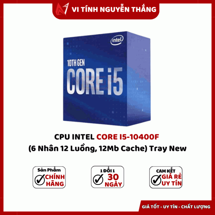 Thông số kỹ thuật CPU INTEL CORE I5-10400F (6 NHÂN 12 LUỒNG, 12MB CACHE) - SOCKET 1200 TRAY