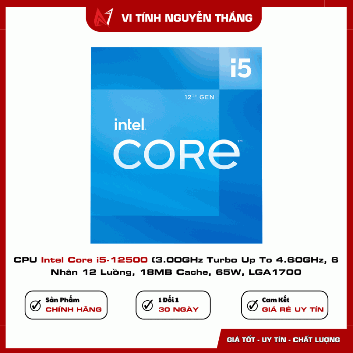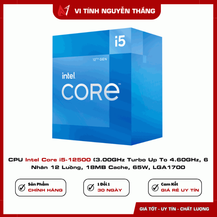 CPU Intel Core i5-12500 (3.00GHz Turbo Up To 4.60GHz, 6 Nhân 12 Luồng, 18MB Cache, 65W, LGA1700) Box Chính Hãng - Giữ lại Box để bảo hành