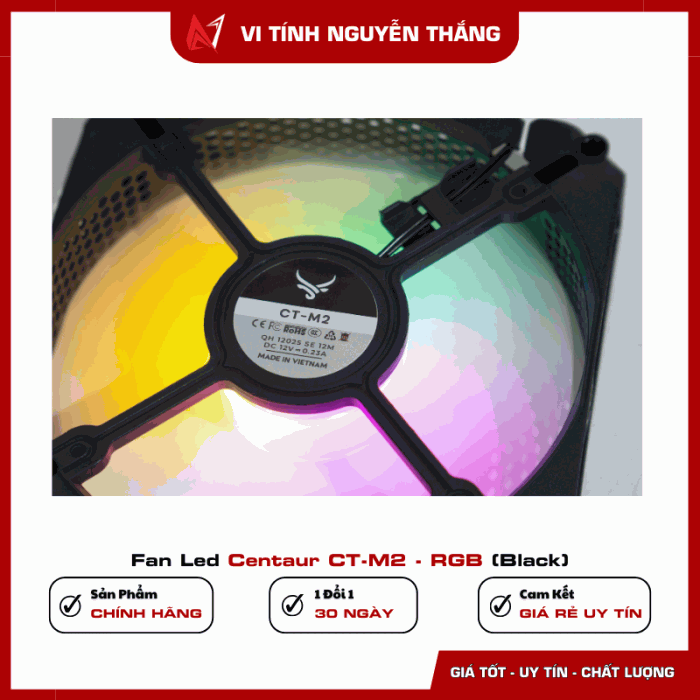 Fan LED Centaur CT-M2 RGB Black là lựa chọn phù hợp cho người dùng muốn nâng cấp khả năng làm mát cho hệ thống PC đồng thời tăng tính thẩm mỹ cho dàn máy. Với kích thước tiêu chuẩn 120mm, tốc độ quay ổn định, khả năng điều khiển PWM và hệ thống đèn LED ARGB nổi bật, sản phẩm đáp ứng tốt nhu cầu sử dụng trong nhiều cấu hình khác nhau.