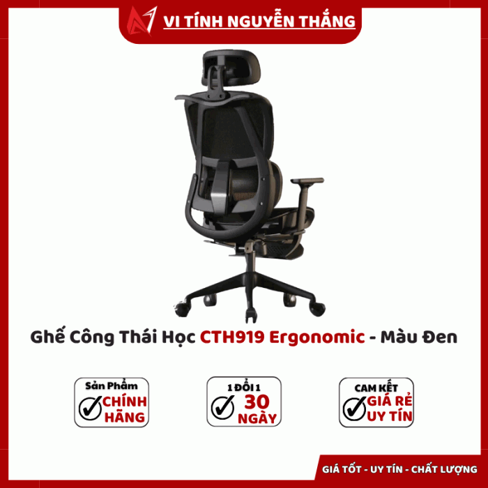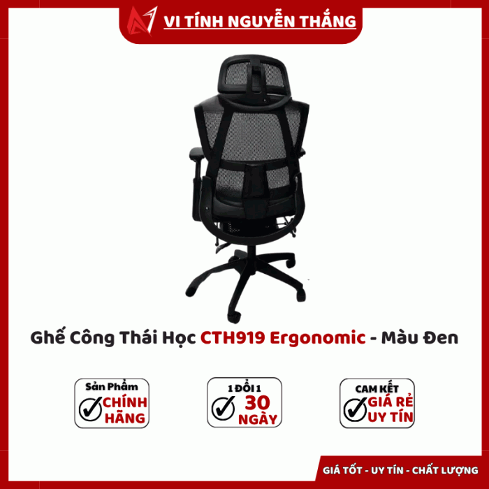 Ghế Công Thái Học CTH919 Ergonomic - Màu Đen